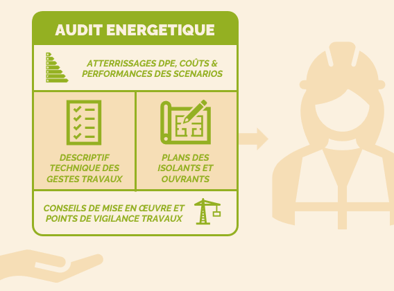 ✓ L’audit énergétique complet (dont descriptif travaux et schémas des gestes énergétiques à réaliser par votre future entreprise travaux)